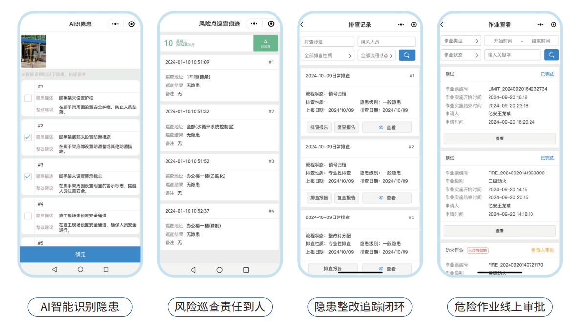 支持自定义作业类型、安全措施、作业流程、过程监督,移动端在线全流程处理,方便快捷。