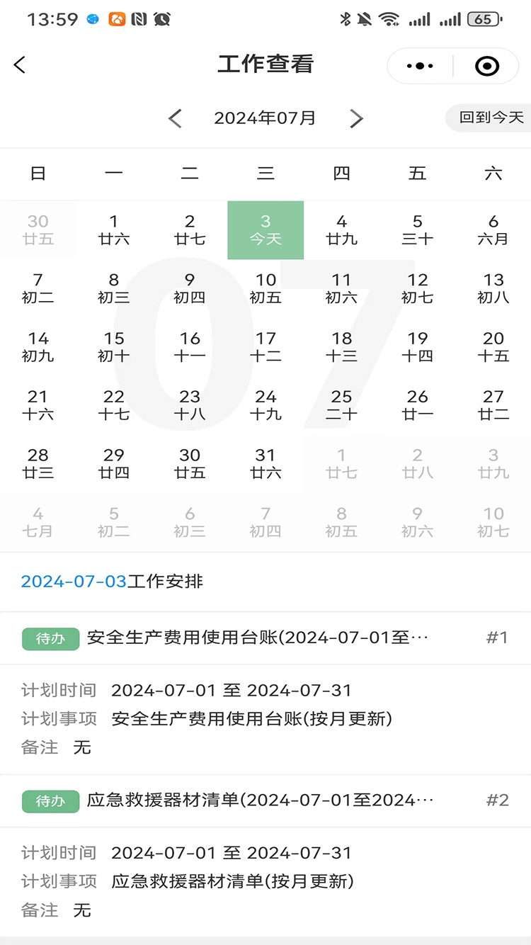 可根据需要及规则设定按月建立安全工作计划,为安全管理提供便捷的管理工具。