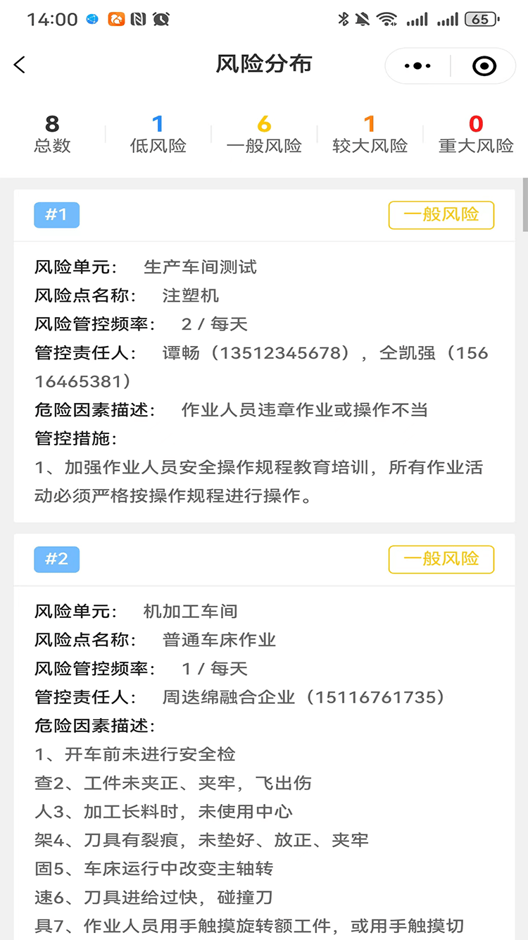 风险分级管控,对应管控层级、管控频次、管控责任人、管控措施等一目了然,责任落实到人。